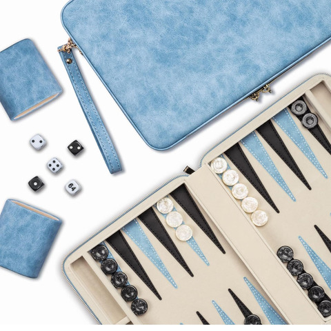 大人のための青い古典的なボードゲームパーソナライズされたプレミアムレザー旅行バックギャモンセット