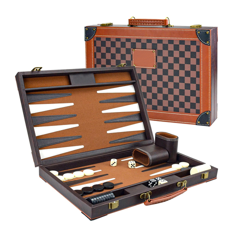 15 18インチ高级カスタマイズPUレザーチェッカーボード手作りポータブルバックギャモンチェスゲームエンターテイメントセット